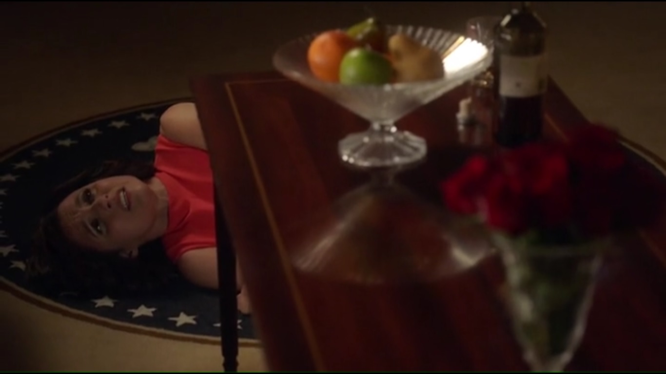 Inauguration Day arrives. Gary finds Selina looking like a fucking wreck. Luckily, it doesn’t look like she fucked Richard. Catherine arrives in a fancy-ass dress and new hairdo, but she’s looking for a hard drive of her film. Gary reminds a despondent Selina that everything can be taken away from her except her beauty.