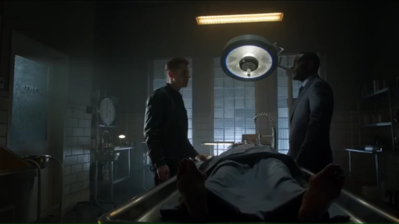 At GCPD, Alvarez tells Jim about the bust, while Valerie takes an opportunity to gloat about getting even with him. In the medical examiner’s lab, Lucius Fox shows Jim the now aged, decomposed body of Ethel Peabody. The results of her death mirror that of another case. Fox figures that Peabody couldn’t help Fish, so she’s still looking for the cure from the one person who can help her.