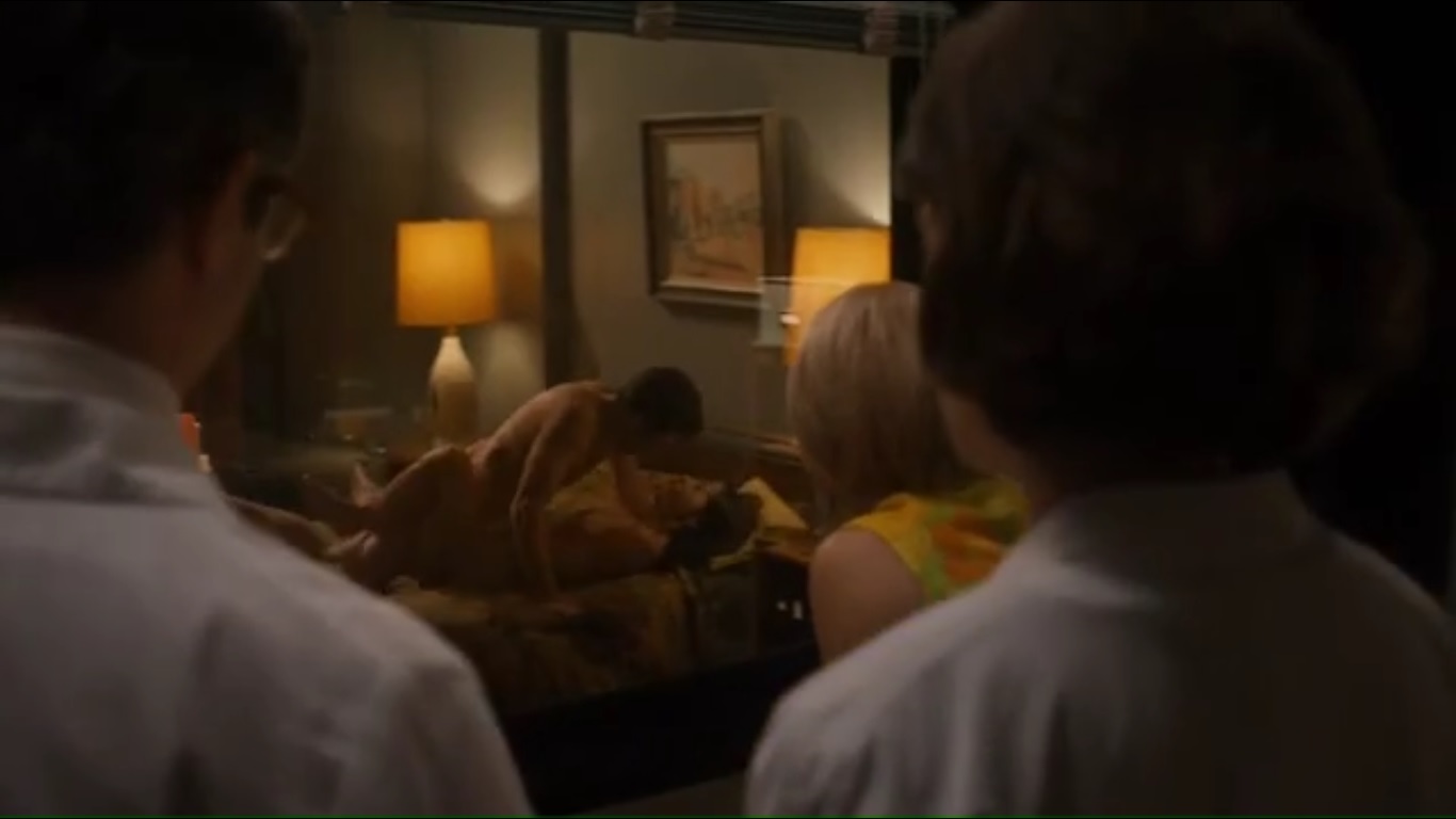 The episode begins with Hugh Hefner welcoming us into the Playboy mansion and introducing us to Dr. William Masters and Virginia Johnson, telling us that they’re the sexual revolution. The two explain the volunteer process and how they conduct their study, though as far as personal lives go, Virginia makes a point of saying that she is married. Though it would make a great story that two sex researchers found love.