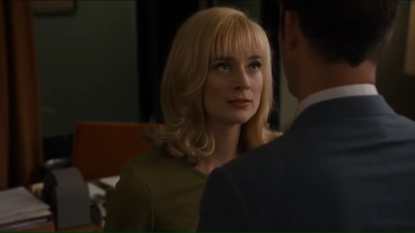 That one attorney, Scotty, played by Gabriel Tigerman, who was smitten with Betty, gets another shot when he asks if she recognizes him. The two met at Betty’s previous job. The brief hesitation on Betty’s face indicates that yes, she knows what he’s talking about, but she says that she doesn’t remember.