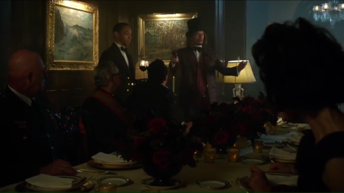 The patrons sit down for the feast when Jervis and the Tweedle Brothers enter to hijack the dinner. He addresses the crowd and tells them that, as the heads of Gotham, their heads will roll. But first, they should toast to good health. And if they don’t drink the wine, they die. Must be some damn good wine. Before the group can drink, GCPD enters. Barnes overpowers Jervis, who realizes that Alice’s blood is inside of Barnes.