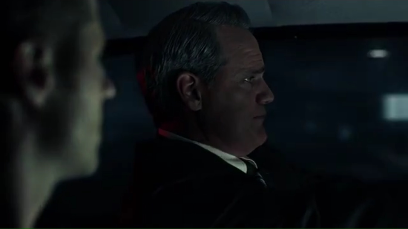 Back in reality-land, Bullock and Barnes interrogate a guard, Sullivan, played by Julian Gavilanes. He’s a hard-ass and doesn’t cooperate, so Barnes flies into a rage and chokes the hell out of him. It’s a rage strong enough that Bullock, who usually plays bad cop, has to pull Barnes away from Sullivan. Barnes’ anger proved successful, though, as Sullivan admits that a man in a wrestling mask paid him for his key card and to take the day off.