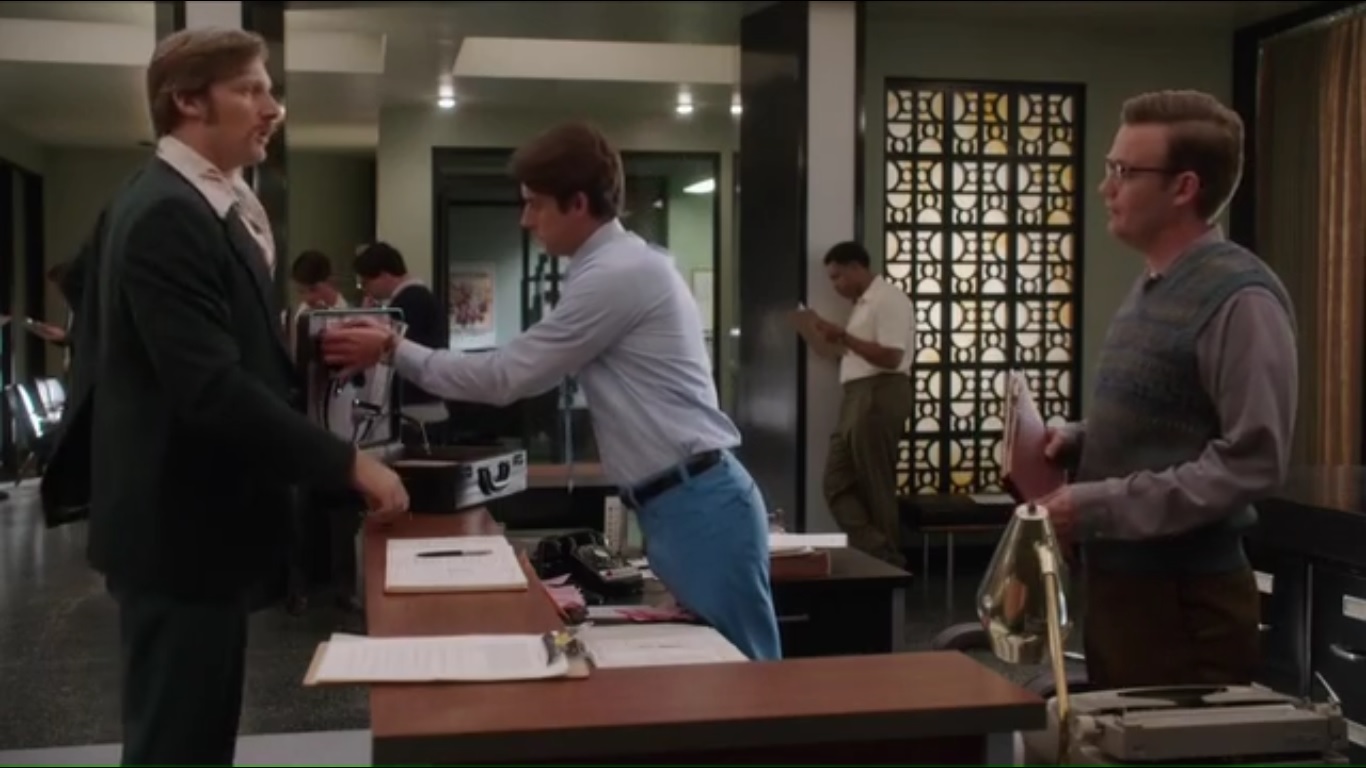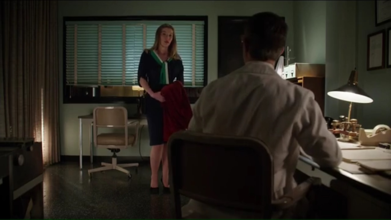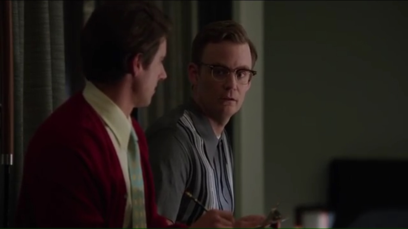 As Art reviews the data on homosexuals, Nancy pops in to tell him that she’s leaving early to meet Charles Clavermore. The recording equipment is off in the room, as the two could be fired if Bill and Virginia learned of this. Charles has found a building for Art and Nancy and he’s brought his lawyer to talk about terms in regards to a partnership.