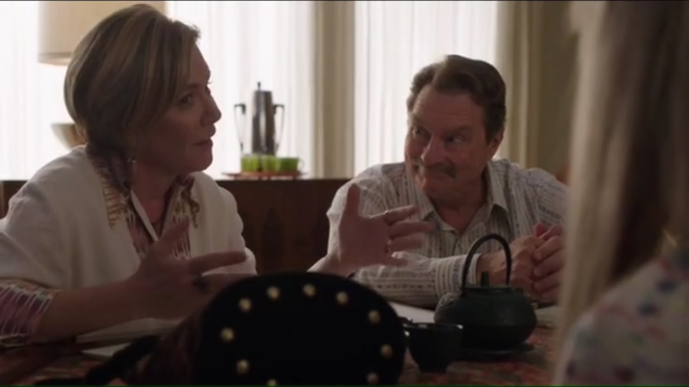 Back in Topeka, Bill and Virginia sit with their doctors: Marcia and Harvey Toplin, played by actual married couple Rosy Rosemont and Stephen Root. The Toplins want their clients to see this as a holiday and opportunity to fall in love all over again.