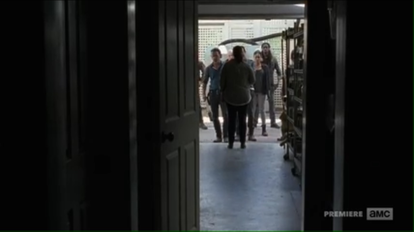 Eric asks what the way out is if they find the guns, but Rick says there is no way out. And with that, he tells the group that he isn’t in charge- Negan is. Eugene then notes that everyone isn’t present at the meeting.