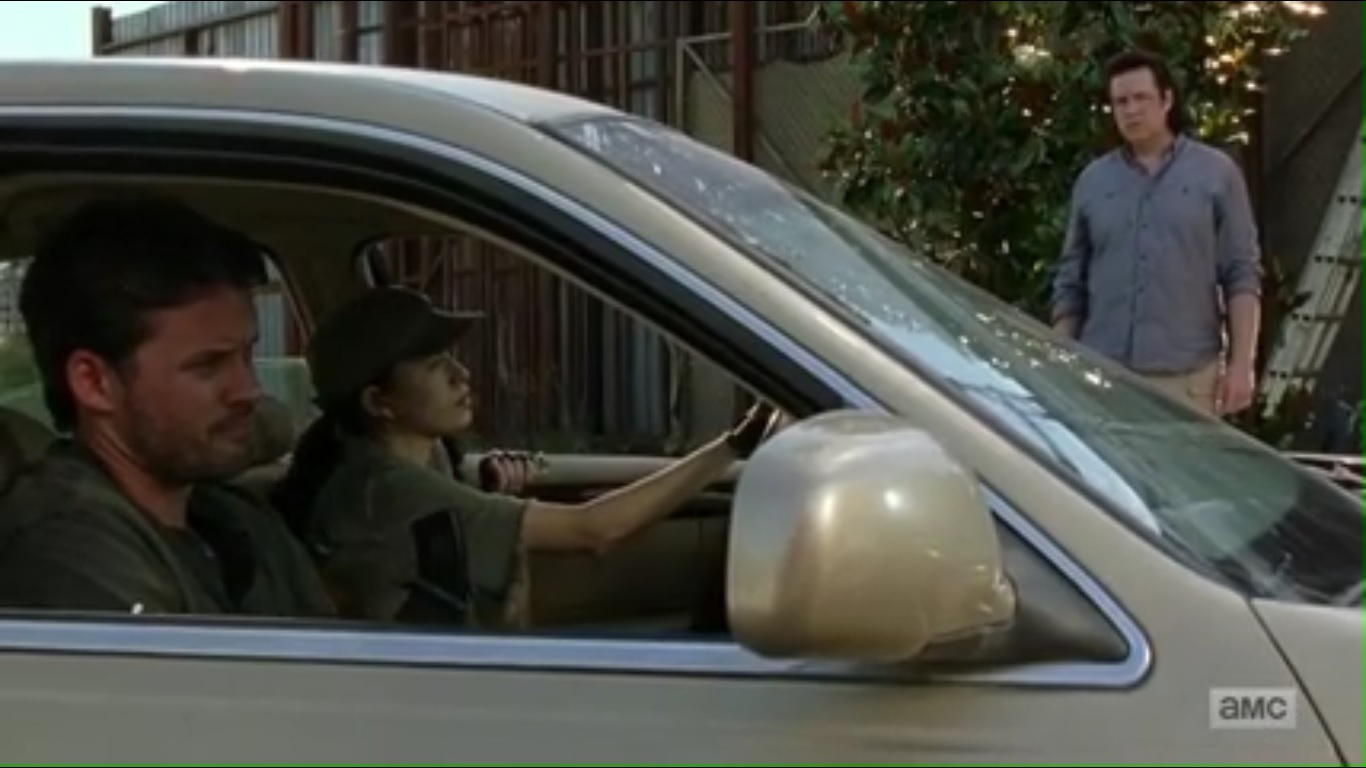Dwight relieves Rosita and Spencer of their firearms, both on them and in the vehicle they planned to use for travel. With that settled, he has a job for Rosita- find Daryl’s bike. It’s not there, but if that’s the case, Rosita must know where it is. Dwight then, for some reason, also relieves Rosita of her hat. Now she’s good to go. To pour salt in the wound, Dwight even empties out Rosita’s water. Best not to take long.