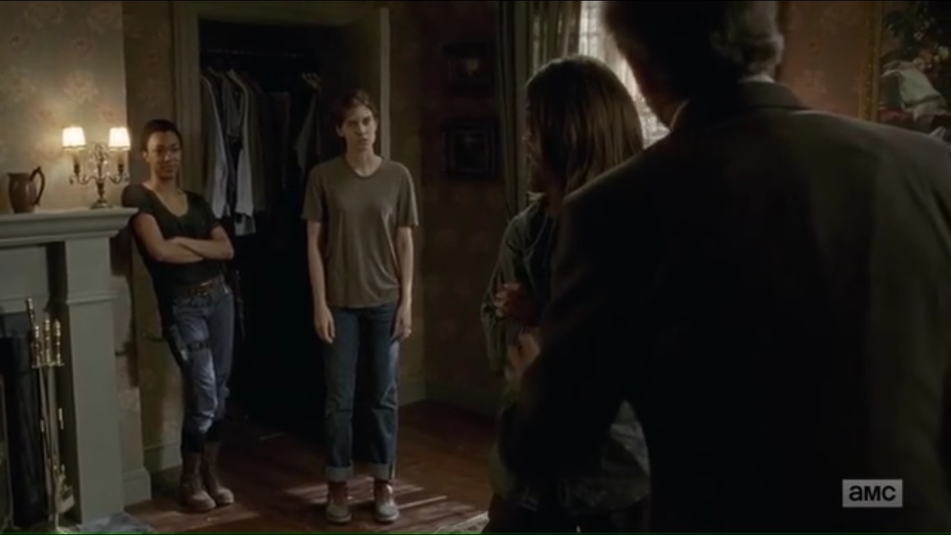 But if Maggie and Sasha leave, then Gregory has plausible deniability. He concedes that the two can stay the night and leave in the morning. And though Jesus wants to talk about this later, Gregory won’t have that. So it’s settled, but not to Sasha. And Maggie’s pregnancy isn’t Gregory’s problem- it’s Maggie’s problem. Well, shit.