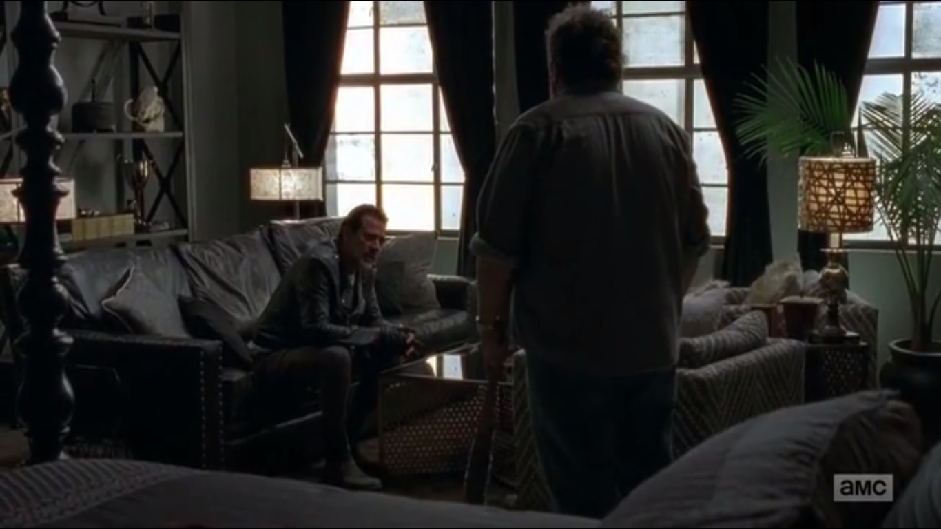 Negan pulls back and apologizes for hurting Carl’s feelings. He was just fucking around. Soon, there’s a knock at the door. Fat Joseph returns Lucille to Negan, as he left her by the truck, which never happens. Negan reclaims Lucille from Fat Joseph and asks if he treated Lucille kindly like a proper lady.