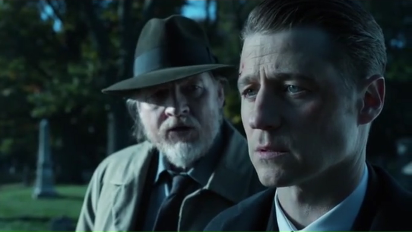 The episode begins with Mario’s funeral. Jim, fully aware of what Falcone may do, watches from a distance, though Bullock advises that he leave. Jim justifies his decision, saying that the infected Mario would’ve killed Leslie. Even still, this isn’t the time or place to apologize or discuss the past. As the two leave, Falcone watches them from a distance.