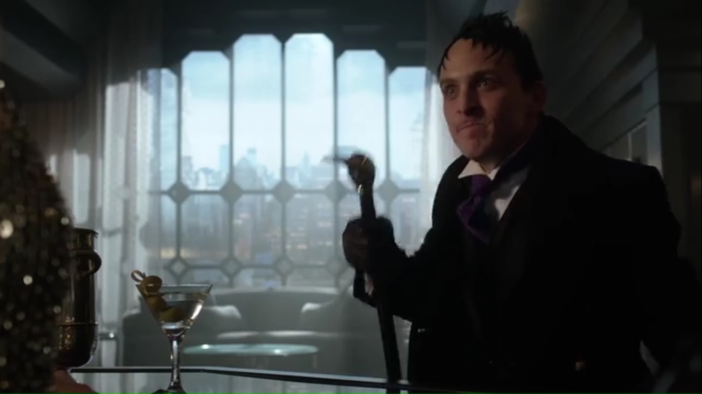 Over at the club, while the families bicker, Tabitha and Barbara marvel at Nygma’s plan. However, Tabitha reminds Barbara that Nygma must still die once this is all over. As for the families? Well, Tabitha guns them down. Barbara then calls Nygma and tells him that Oswald is his for the taking.