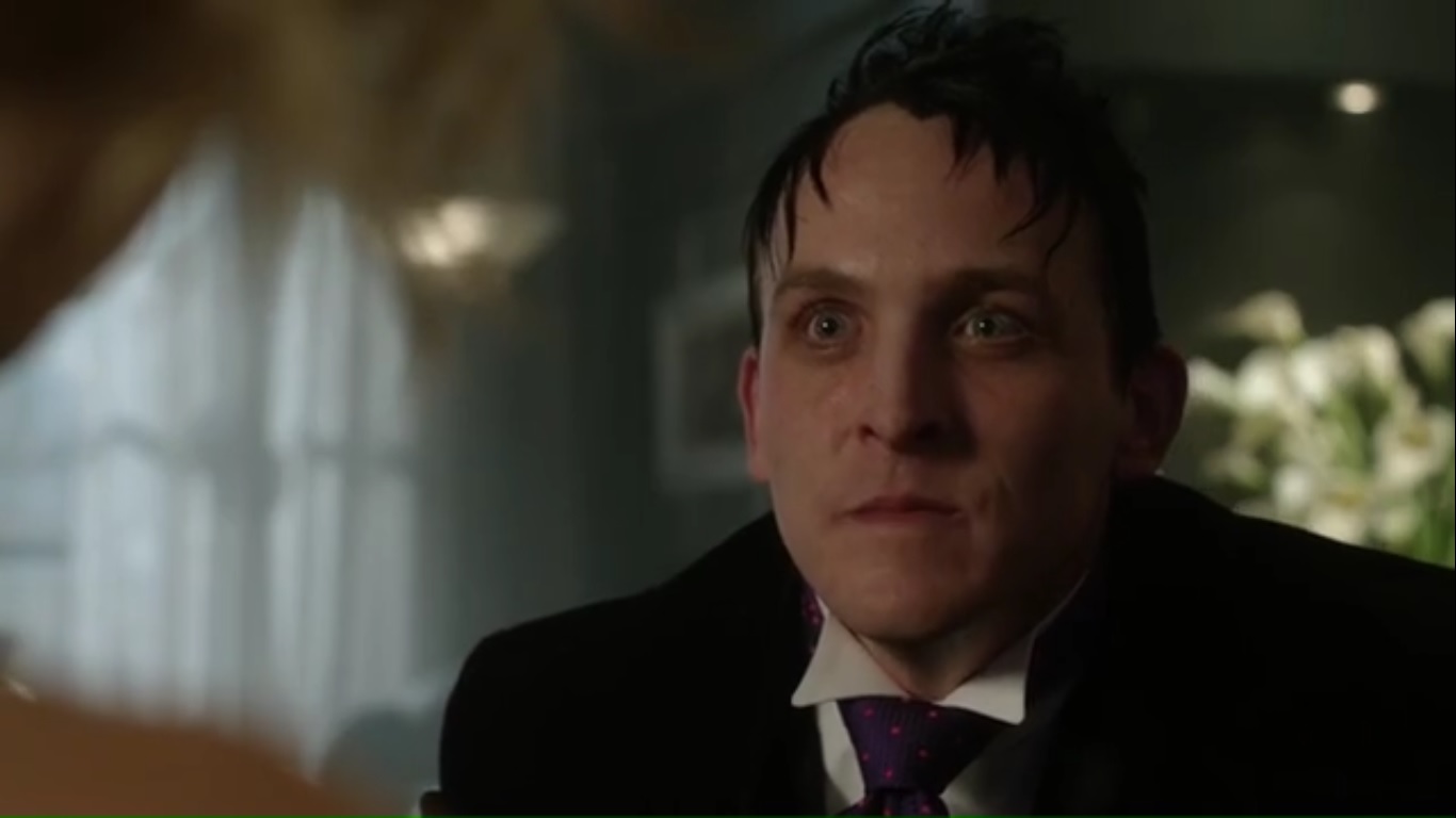 Gabe tells Oswald that Nygma wasn’t at any location belonging to Tommy Bones’ or The Duke. Oswald insists that Nygma is in danger when he suddenly gets a call from a frightened Nygma who can’t talk for long. Before Penguin can learn where Nygma is being held, the line disconnects.