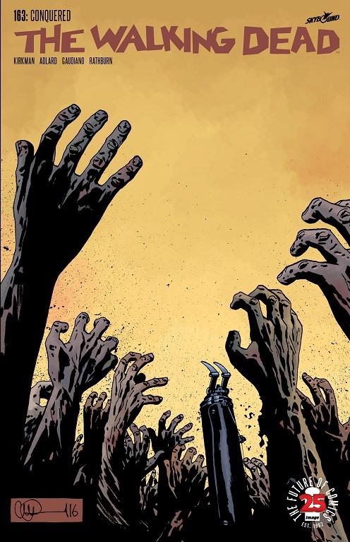 Now let’s get to the Safe Zone itself. There’s some great tension and fantastic imagery here. Between Cliff Rathburn, Stefano Gaudiano, Charlie Adlard, we get some good visuals of the herd pressing towards Alexandria. It’s much more claustrophobic, I feel, than the herd in “No Way Out” just due the size and volume of the herd ready to break down the gates.