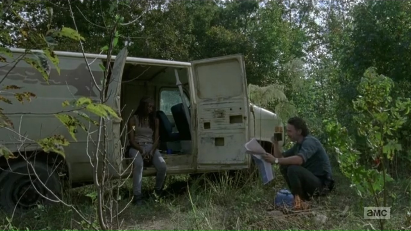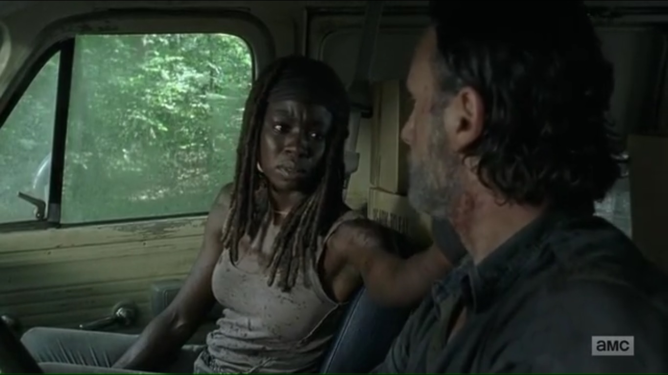 Rick wants a day and a half more to scavenge instead of going back to Alexandria, though Michonne insists that they don’t need to find them right now. True, but Rick wants to stay out a little more.
