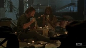 But Rick doesn’t want that responsibility, even though Michonne feels that he’d be good at it. However, Rick isn’t sure he wants that. But the two of them reordering things together, that’s much more preferable. Michonne likes that at least. Rick then says that the two of them can take their time with gathering the weapons since the place is clear and locked up tight. And they’ve found the only way in.