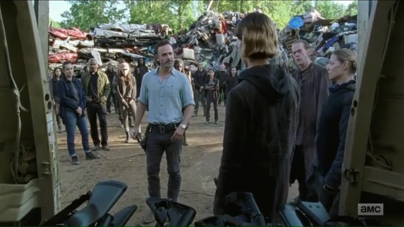 At the junk yard, Rick delivers the guns to Jadis, who wonders if the weapons are operational. Jadis doesn’t consider this enough. She wants nearly twice the numbers. Plus, these are now their guns as part of the deal. Rick wants to keep 10, but after some bartering, he bumps it up to 20. And he wants Jadis to say ‘Yes.’ Roll credits. As for what happens next, they’ll find more weapons in a few more days.