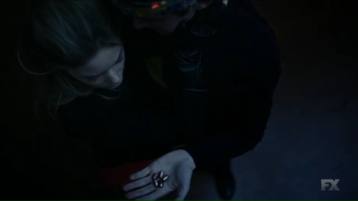 Amy tries to apologize to David for not telling him about being adopted, not to mention his mutant powers. She admits that David should’ve come to live with her and Ben, but David says that they’ll figure this all out later. Then, out of nowhere, David spots the figure from his book. Surprise, surprise. Cary cautions him not to move the halo too much because of the connection, but David wants this thing out of him as fast as possible.