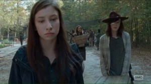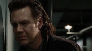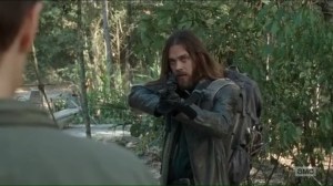 The bit on cowardice comes through Gregory, as we’ve seen before, but we see here that he’s painted himself as a capable fighter against walkers. But what he told his followers differs from what we saw when confronted by a walker. He couldn’t even handle one and had to fall back on the pregnant woman he doesn’t want encroaching on his territory.