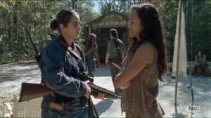 But no, aside from the characters that have been named or identified, we don’t get that much sense of what the Oceanside women think or feel about these strangers coming into their territory to take their guns. And like some of the Hilltop residents, I wager most of them would be cannon fodder if they decided to join Rick’s effort.