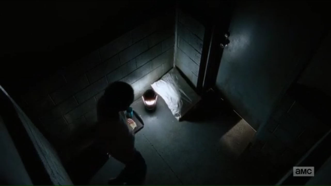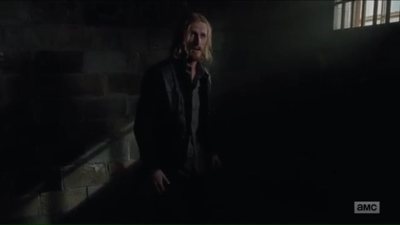 Sasha’s raid at the Sanctuary didn’t go so well. In fact, she’s being held in a cell and asks a visiting Savior, David, for some water. He asks if she remembers her from last night, but she doesn’t. He gave the rope to the Saviors that tied up Sasha and notes that there are many things you can do with rope.
