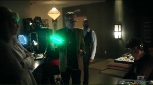 Syd asks for an explanation on how the device works. Cary explains that he’s found a second set of brain waves inside David’s head. A magnetic field will hopefully suck out every trace of the Shadow King and leave David intact. The key word being ‘hopefully.’