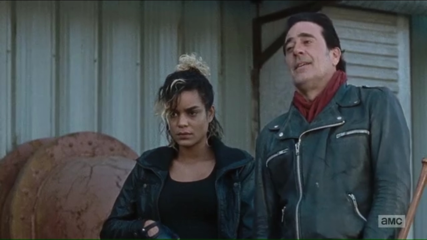 In the present, Negan welcomes Sasha to episode title- I mean, the first day of the rest of her life. He presents a tray of food and tells her that she’s going to help him make sure things get back on track since she’s smart and doesn’t suffer. Negan doesn’t want to watch her die, so she doesn’t have to, but someone, or even a few people, must die.
