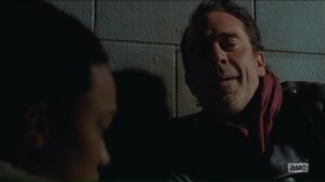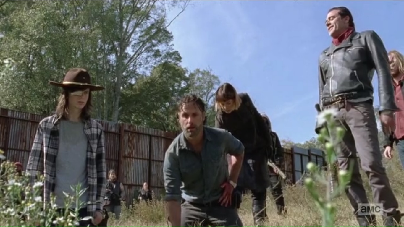 Negan admits that he likes having fun. This will make what he did in the woods seem like a put-on. He admits that maybe this is all on him, so he has to make this right by starting all over again. At the very least, he admits that he has a soft spot for Carl, who speaks up and says that Negan won’t win. But Carl needs to look around him. After hearing a scream, Negan tells Rick that he chose this route.