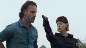 Still, she doesn’t want anyone to die. Okay, Negan proposes that just one person has to die. Sasha is fine with those terms. They’ll be leaving in 45 minutes.
