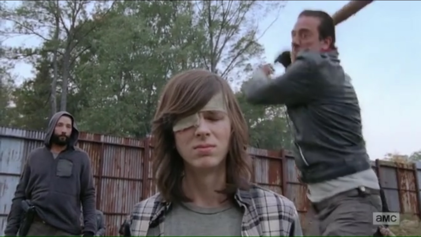 Negan gave Rick ample warning, but this is a punishment, not a warning. He’s going to kill Carl with one hard swing, but he’ll try to do it fast because he likes him. And then Lucille is going to take Rick’s hands. Rick reminds Negan that he said he would kill him and he still plans to do that, even if it means losing his hands. No matter how bleak things are, nothing will change that Rick plans to kill Negan.
