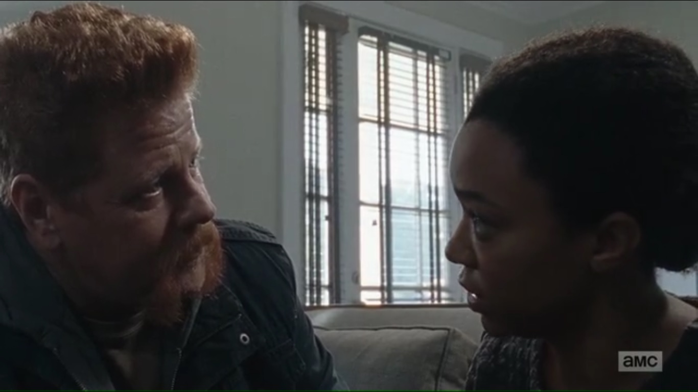 It was nice to see Michael Cudlitz again and I’m always game for hearing Abraham’s way with words, but I have two minor issues with these flashbacks: one, they were a bit too on the nose with what the point this episode wanted to make. Never mind that Sasha kept repeating things said in flashbacks we saw just after she said it.
