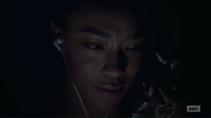 The episode begins with Sasha listening to music in darkness. We soon flash back to her having some make-out time with a happy Abraham. He didn’t want to wake her up since she’s been pulling late shifts, but Maggie’s in trouble and Rick is taking her to a doctor at the Hilltop. Abraham knows things between him and Sasha just started, but before he can say more, Sasha interrupts and says that she doesn’t want him to leave.