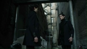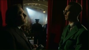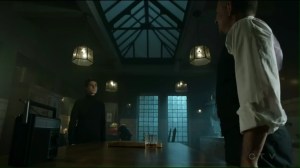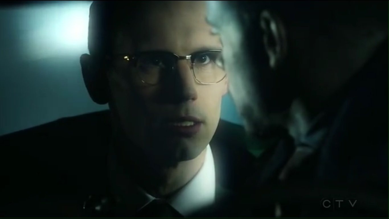 After bounding Dyson’s hands, Nygma presents another riddle: I can be a member of a group, but I can never blend in. Dyson guesses shadow, but it turns out to be an individual. Duh. Nygma rages at Dyson’s ineptitude, but soon apologizes for his temper, as he hasn’t been feeling like himself as of recent. To the professor’s credit, none of Nygma’s other test subjects fared well, either.