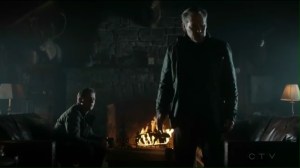 Then Oswald, for some reason, breaks into a rendition of Amy Winehouse’s “Wake Up Alone,” but Nygma cuts this short. He admits that killing Oswald hurt him, but he will be born anew and leave Oswald behind.