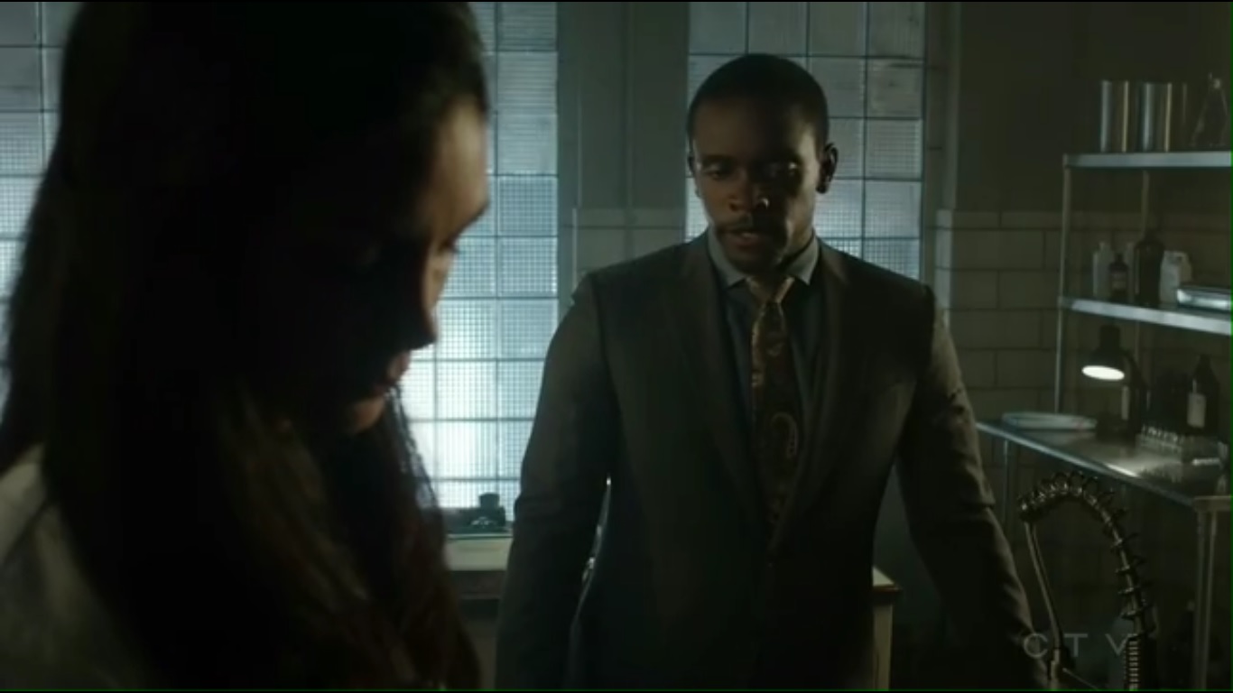 Bullock and Lucius speak with a guy named Peters, played by H. Foley, about Nygma’s clue since he works at a pawn shop outside of Queens Avenue. Bullock is wearing his nice suit, so he wants Lucius to play the bad cop. But it turns out that Peters wasn’t even meant to be working today- he’s just covering for a guy named Terry Thirio. ‘Thirio,’ as Fox realizes, is Greek for ‘beast.’