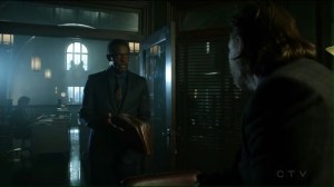 Instead of staying at GCPD and just providing answers for Harvey and the rest of the officers to solve, he plays a direct role and manages to save Harvey’s life. If it takes removing Jim from the equation for Lucius to get this kind of focus, I say let Jim have as much time away from the force as possible because I’m all for Lucius playing a more active role within the GCPD. And it shows that the GCPD can function without Jim.
