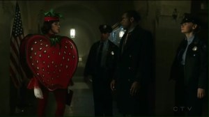 Lucius and other officers arrive before meeting a woman in a strawberry costume, who asks if Lucius is ‘Foxy.’ Lucius knows of just one person who calls him that. He calls Nygma, who reveals that he gassed the cadets with a deadly toxin. Lucius must come upstairs to solve Nygma’s game, and he has to come alone or Bullock and the cadets will die.