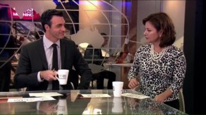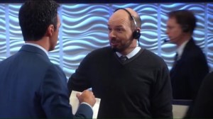Over at CBS, the only news station covering anything, it turns out that Dan and Jane now have great chemistry, but when the coverage ends, Jane requests that Stevie get a shot of her beaver. Once Jane heads off, though, Dan tells Stevie that he wants to be Jane to take him seriously. Yeah, let’s see how that goes. Also, Dan’s getting a fair bit of bronzer on his face. Keep that in mind for later.