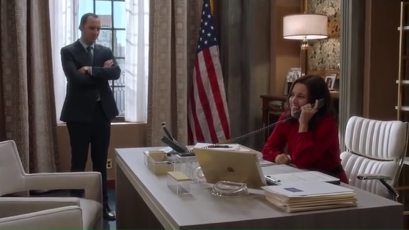 So while it’s business as usual for Selina Meyer, still focusing on securing funds and a location for her library, her post-presidency life gets a huge spike upward because of a goof on Mike’s part. All the press asked was if she had an idea who Montez would pick, not if she herself was being considered. But because Mike said there’s no truth to the rumor that didn’t exist, the press ran with that narrative.