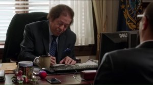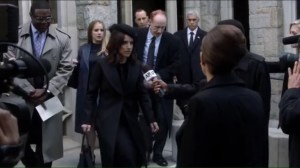After Selina’s meeting with Hallowes, played by Kate Burton, ends, Richard informs her that Tanz has called, but Selina is on a high and focused on the open seat, so she doesn’t even need the library. Mike thinks this would be great for the book, but Selina figures that if she’s going to be on the Supreme Court, she may not even need to finish the book. Well, guess she doesn’t have to pay Mike after all.