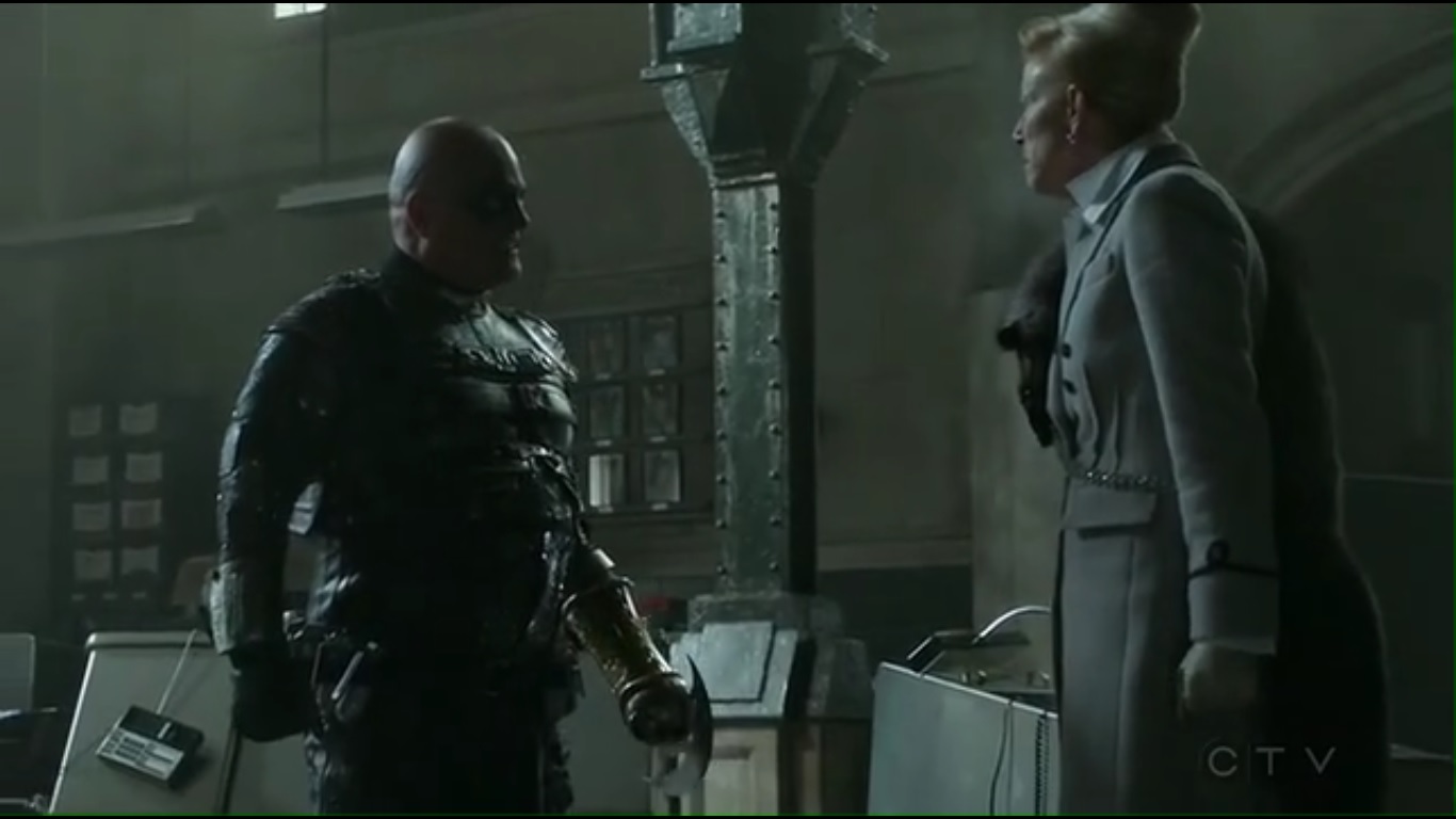 With that in mind, the sequence at the GCPD did have some fun moments. Not Barnes’ attack itself, though. We’ve seen the precinct attacked so many times that I’m surprised there are any officers still alive. But things like Alfred stabbing Kathryn I found refreshing. It further shows his devotion to Bruce, but gets him involved in the action as well after spending so much time at Wayne Manor.