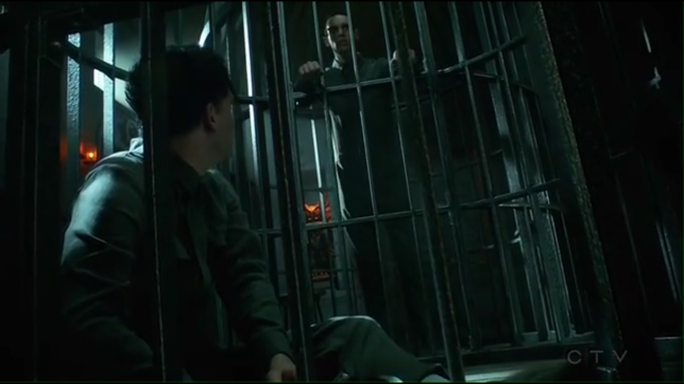 Penguin wakes up and finds Nygma back in his cell. Neither of them know why they haven’t been killed yet and since Nygma’s one meeting with Kathryn, he’s heard nothing from upper management. He’s just overheard chatter that the Court plans to attack the city.