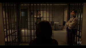 Gloria heads to the ladies room and unwinds while Nikki stews in her cell. She rises from her seat, eyes the camera, and finds an officer entering to search for contraband. He threatens to tase her if she doesn’t comply, so she does. Before he can inject her, Gloria rushes in and holds the man at gunpoint. However, the officer kicks the gun away and escapes.