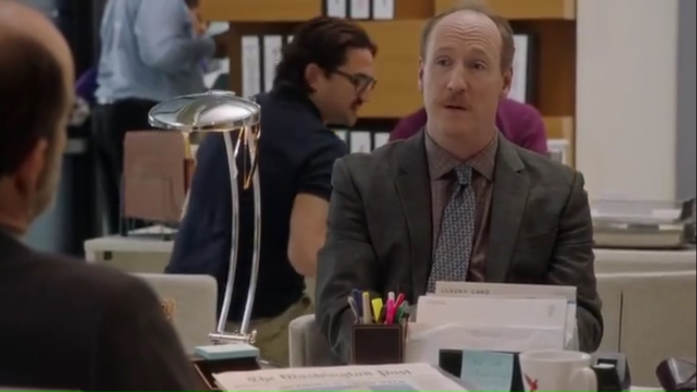Meanwhile, at the Post, Leon gets a phone call, presumably from Mike, and doesn’t answer it.