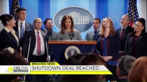However, before Jane’s interview with Jonah can start, she gets word that a deal in Washington has been reached to end the government shutdown. Indeed, President Montez and the Libertonians have come to an agreement.