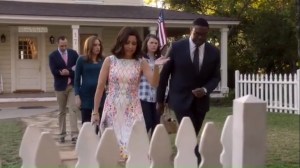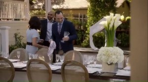 It’s time for the birthday festivities to begin. There’s a bit of a problem with the signage, but for Selina, it’s not the Confederate flag, but the birthday sign. She’s then introduced to Quartie Sturges, played by Toby Huss, who apparently heard nice things about Selina from President Hughes.