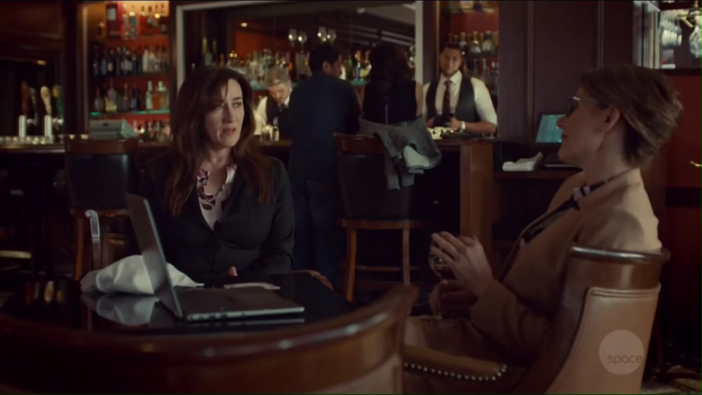 Indeed, they head to a bar and wait for their mark: Elizabeth Perkins, played by Sarah Orenstein. Ms. Perkins has a daughter, and while Sarah would prefer to be with Kira, Perkins is pertinent and S needs to get her I.D. Sarah and S fake an argument leading to Sarah throwing her drink in S’s face as a distraction while Sarah grabs Perkins’ I.D. Before S can go back to the bar, Ms. Perkins invites her for another drink.