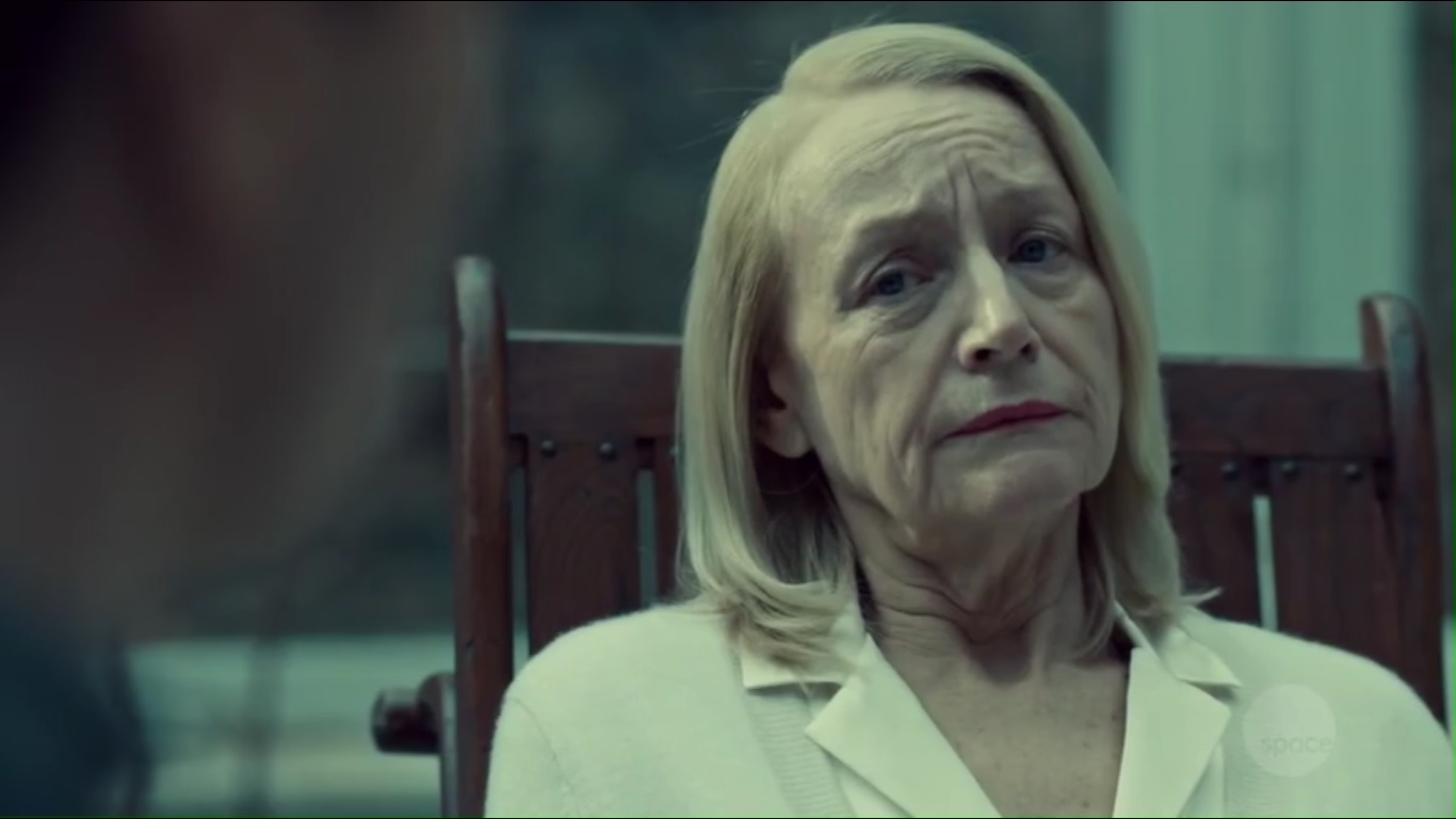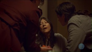 While S continues to talk with Ms. Perkins about their daughter troubles, Sarah goes through Ms. Perkins’ wallet. Perkins tells S that she’s studying PTSD and is in town for some case studies. As she goes for her card, Sarah returns the wallet. But before S can leave, Perkins tells S that Sarah is struggling and on the threshold of becoming just like S.