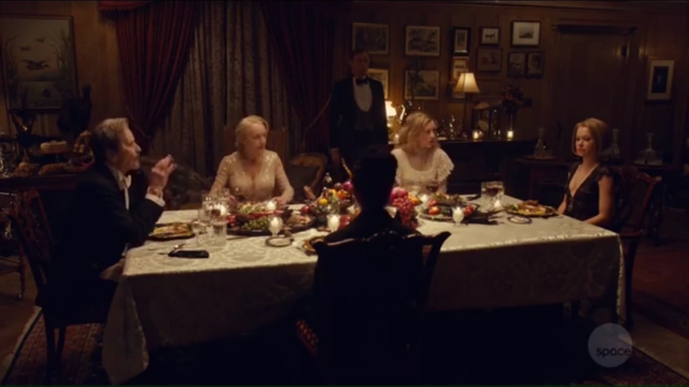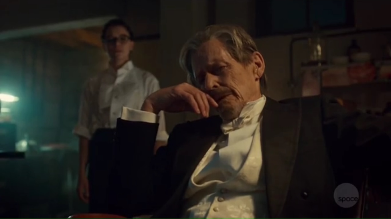 So the two dress up and join the others, though Cosima is surprised to find Susan alive. As PT brings Delphine in, he tells Cosima that Rachel will be joining them shortly. PT knows that Cosima is onto him, which is why she’s been invited to dinner. While Mud and the other villager continue exploring, Susan tells Cosima that all of the creatures in the mansion are a result of taxidermy.