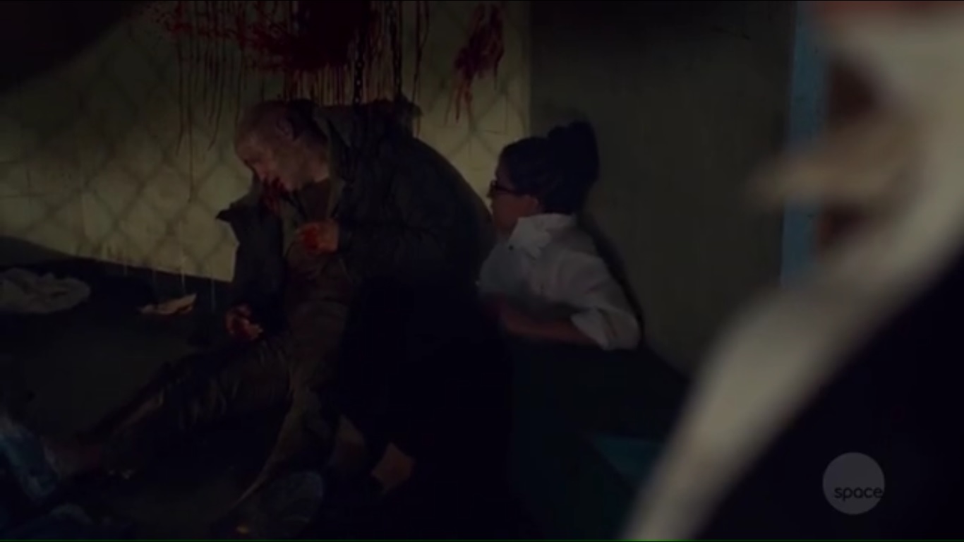 Back at Revival, Mud and a group of soldiers discuss this creature and how to deal with it. Everyone receives their orders, but Mud is content that this creature doesn’t want to hurt them. Cosima tries to ask Mud for information and asks what PT did to make him violent. Seems that this creature wasn’t always like this. He used to live in the camp, but then people performed experiments on him. So Mud freed him.
