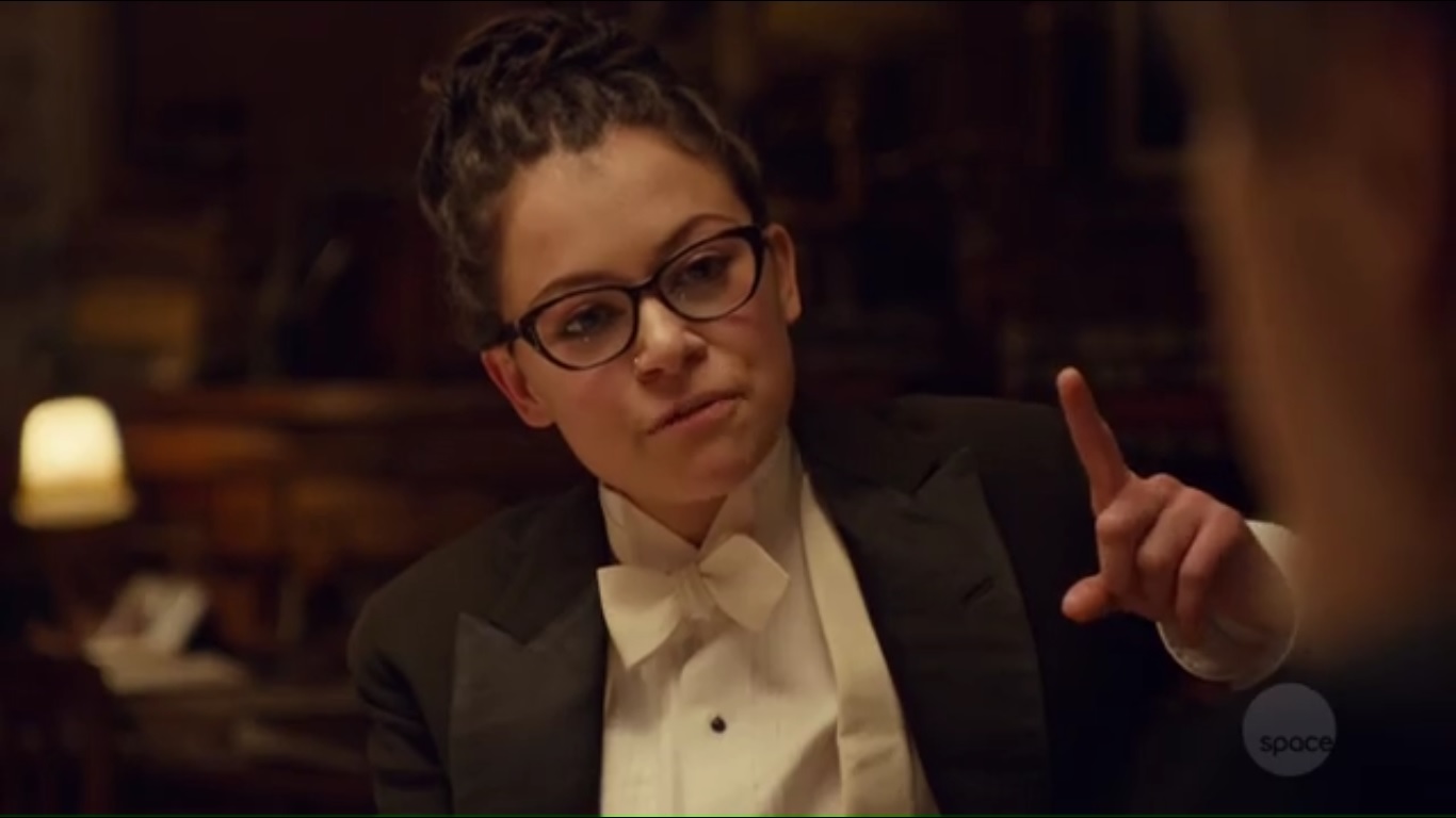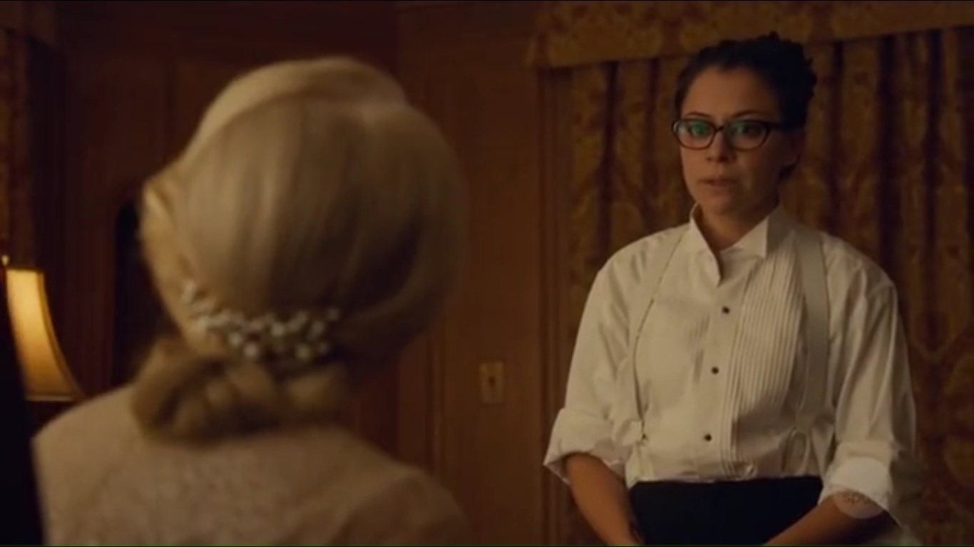 So Cosima is now invited to dinner. She and Delphine come to the mansion and are told by The Messenger that they must dress up for the dinner, much as Cosima doesn’t like that. Still, Delphine tells her to stop asking questions and just play along for Kira’s sake.