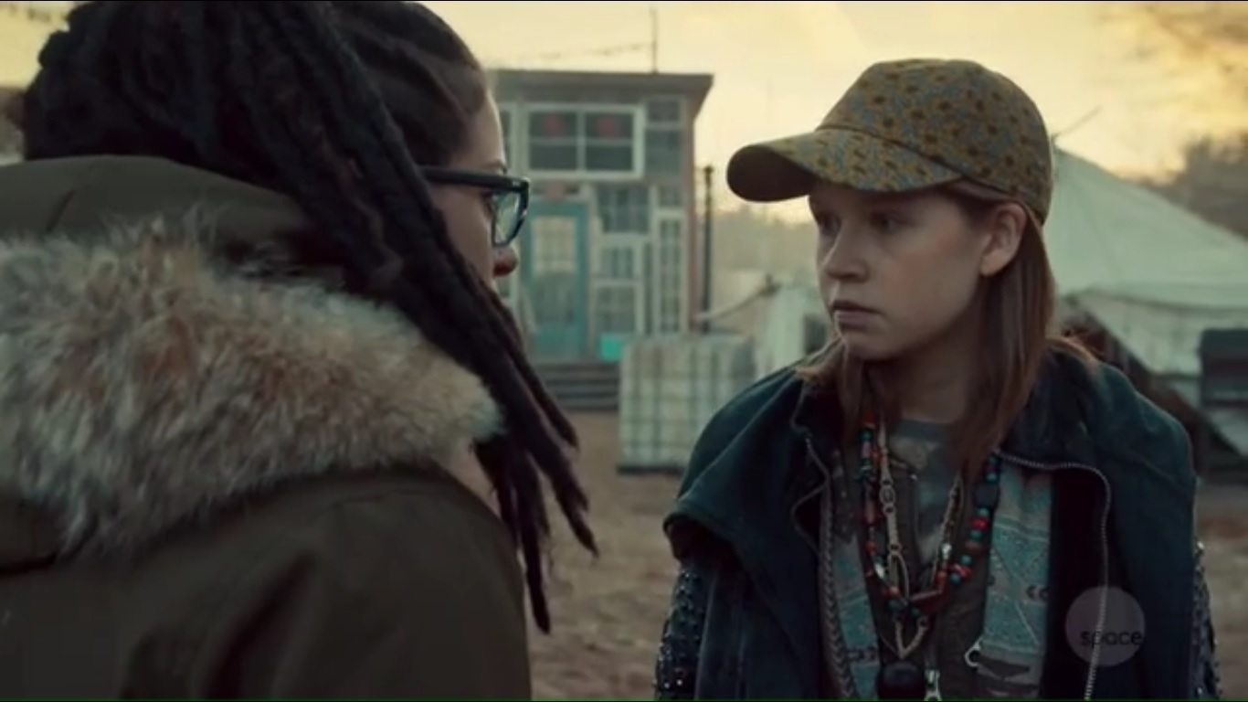 The next day, Cosima heads out and finds the residents talking about a thing that’s apparently attacking them. The heads say that it’s a bear, but no one buys this. Cosima spots Aisha heading over to her mother and follows them into their tent.